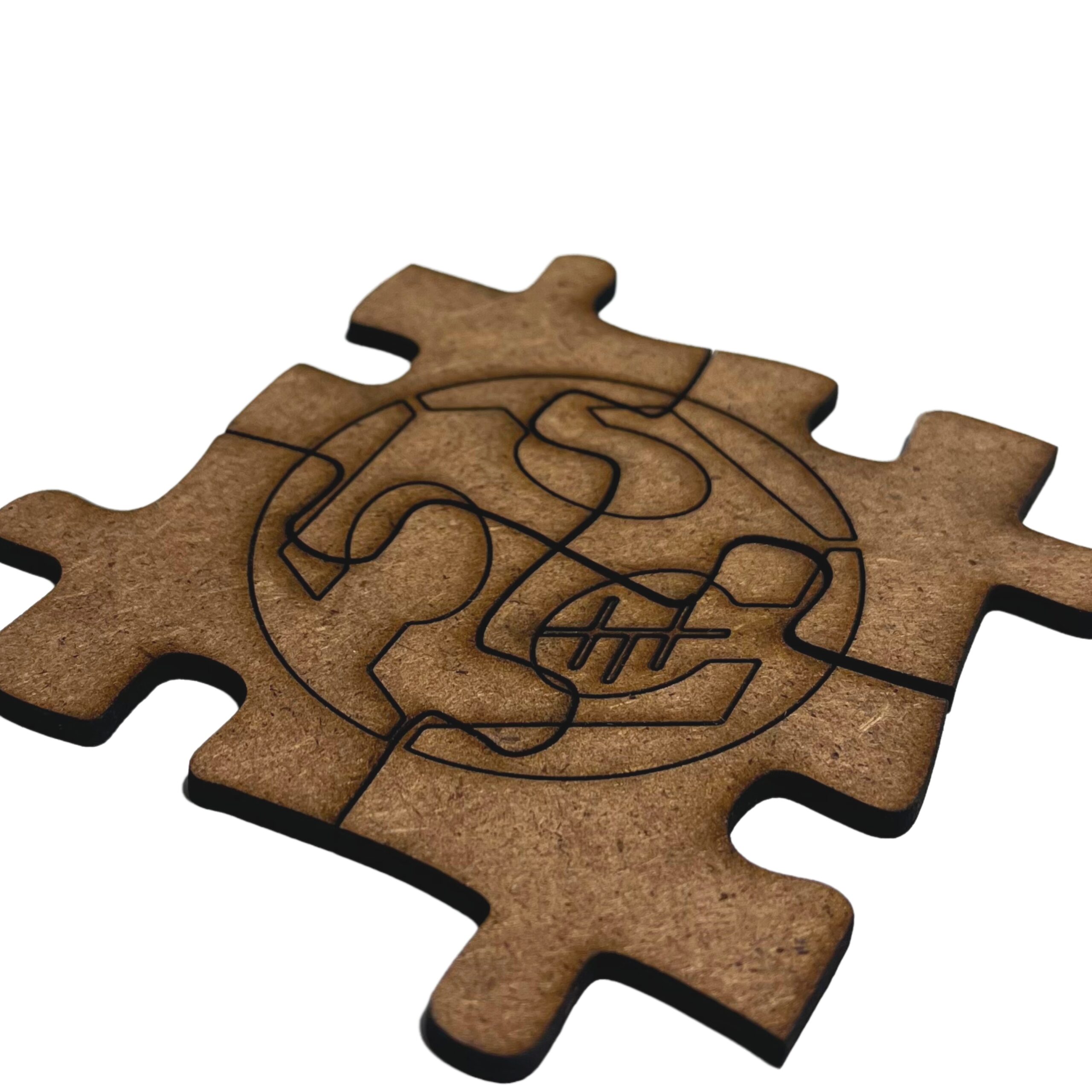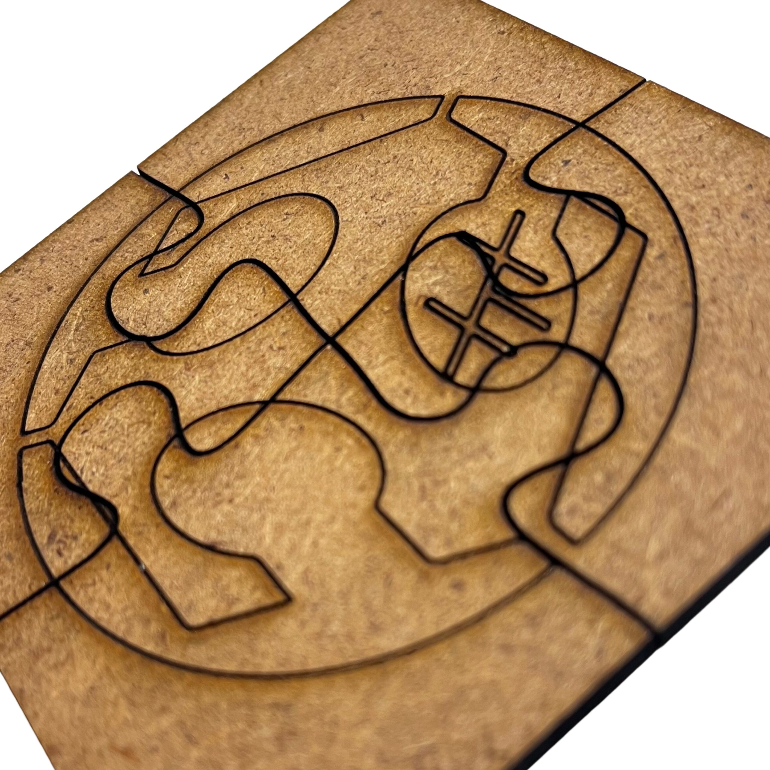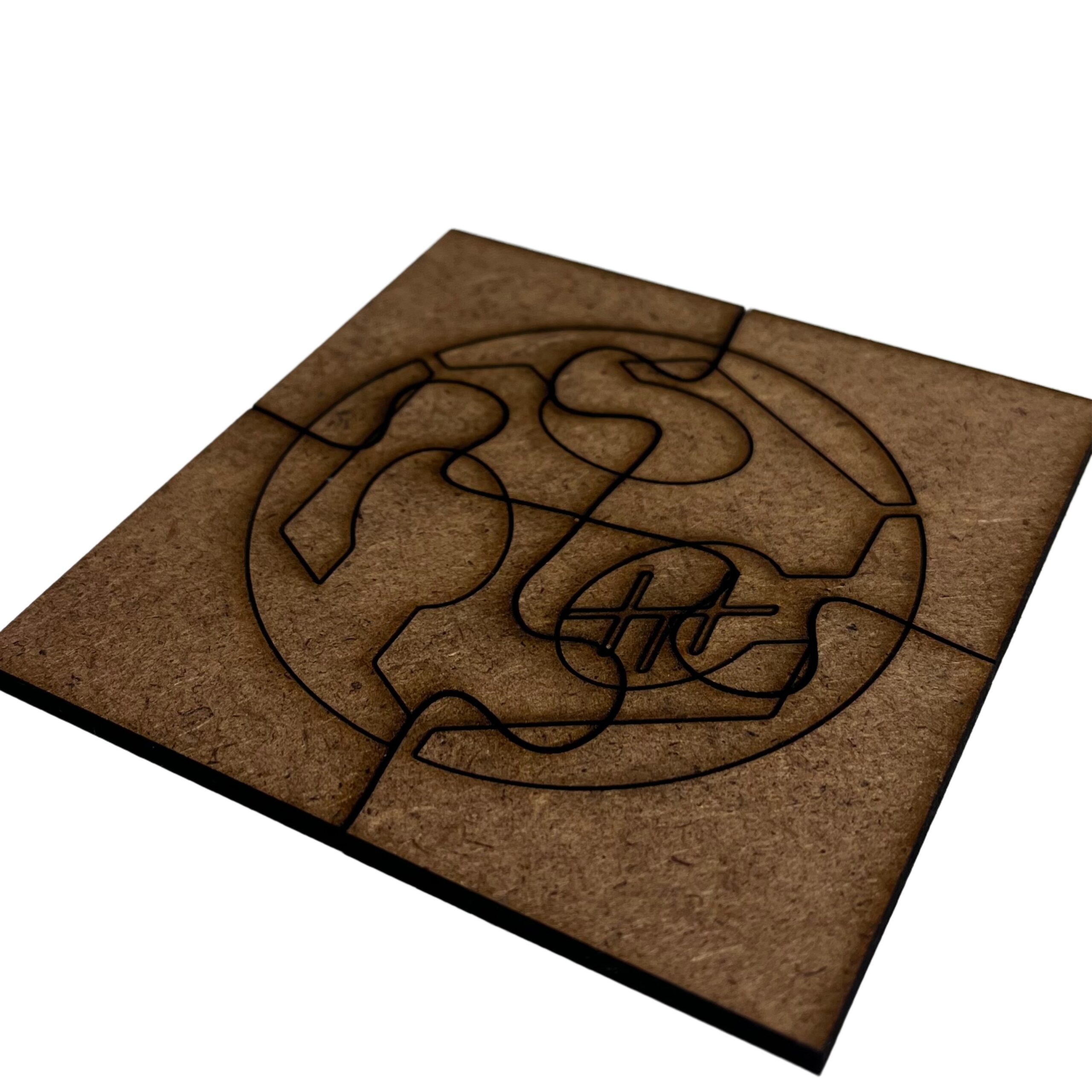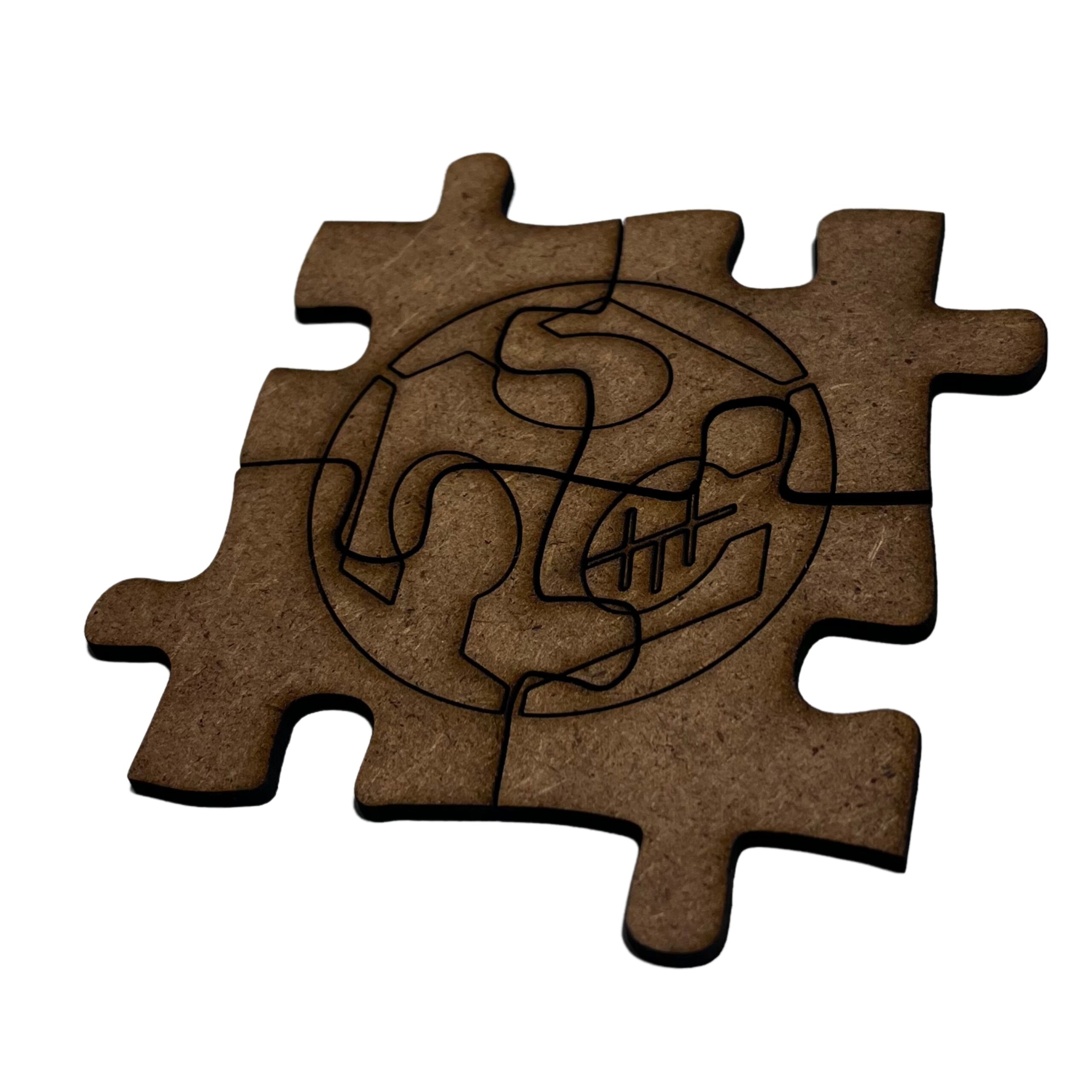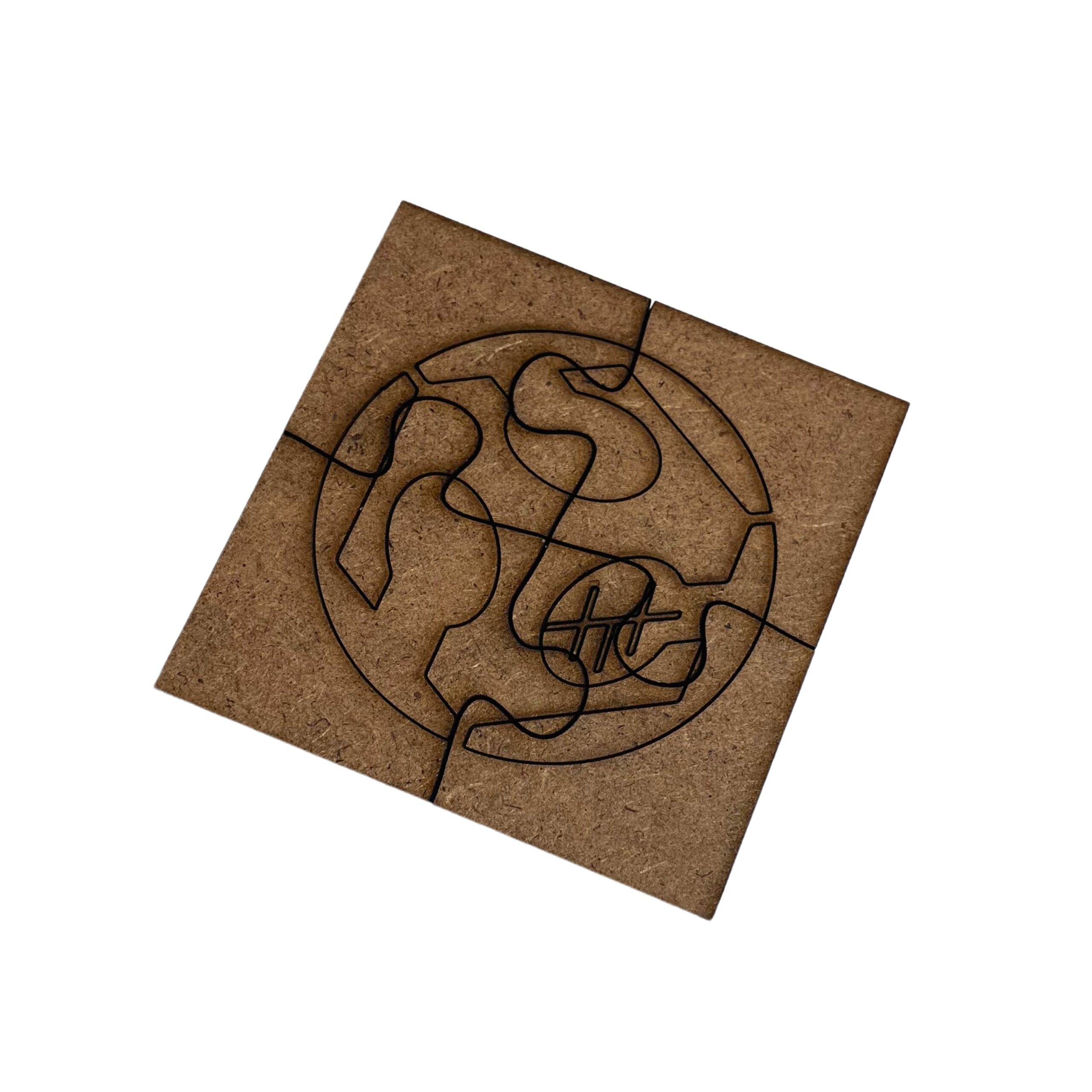 mdf 1/8 sin acabados, con 20 piezas, y diseño marcado sencillo encima